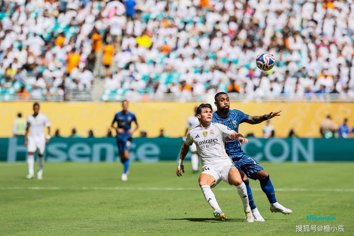 世俱杯首战炸出惊天冷门!皇马踢沙特球队利雅得新月,场面比比分更扎心——上半场加西亚第34分钟破门后,皇马竟被对手按着揍!沙特人边路配合行云流水,禁区内小技术眼花缭乱,点球扳平后差点反超。要不是前锋射门脚软,皇马真要阴沟翻船!